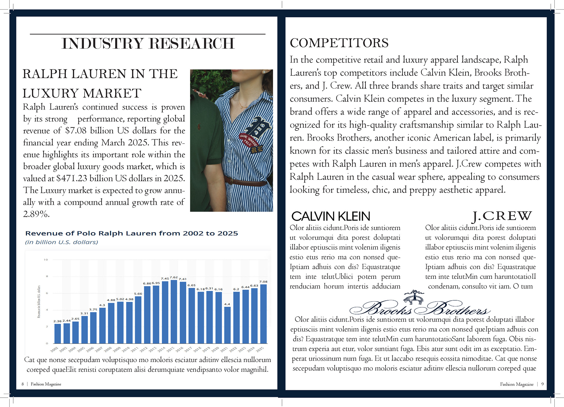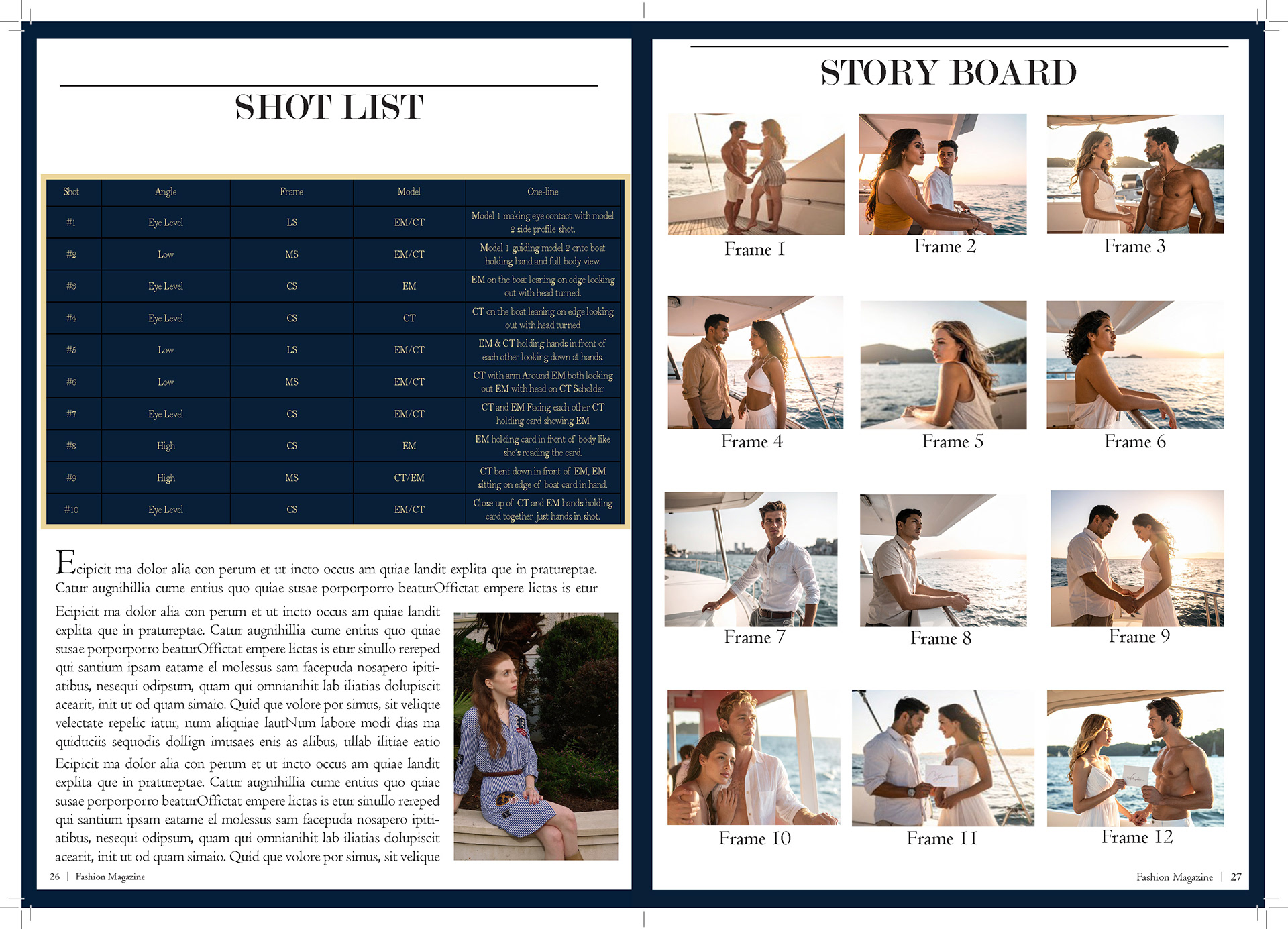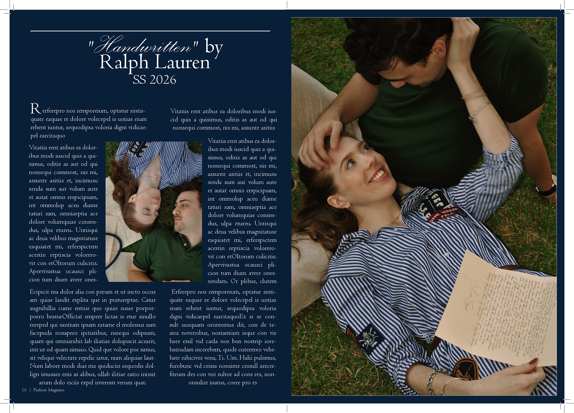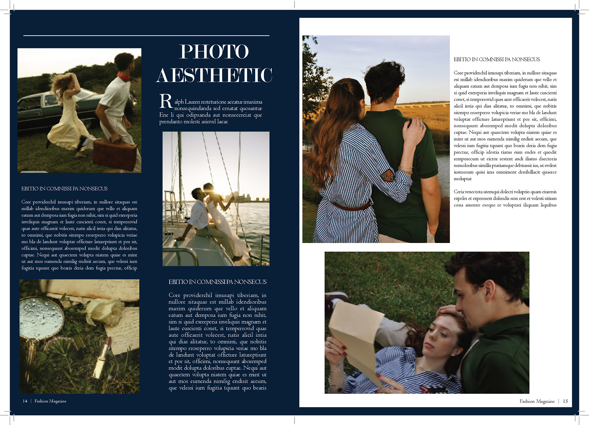 In my Fashion Marketing class, our final project was a mock campaign where we had to work with a team to create a campaign and film for a brand. For this project I was one of the creative directors, the photographer/videographer, and co-stylist. I also helped with creating mockups for advertizing and the editorial spreads.